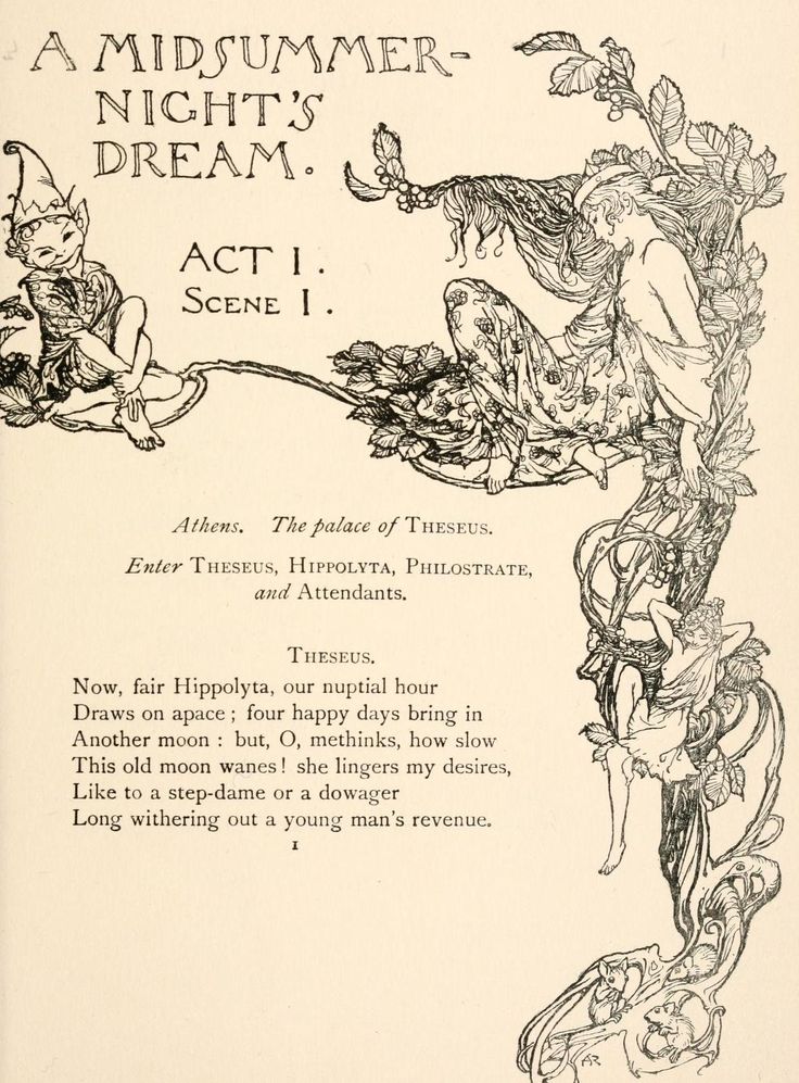 Pendant ce temps, des artisans préparent la représentation de la tragédie de Pyrame et Thisbé pour les divertissements du mariage. Et la reine des fées Titania est fâchée avec le roi Obéron. Celui-ci demande à Puck, le lutin, d’arranger un tour à tout ce monde-là grâce à un baume magique.