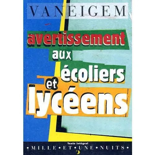 Vaneigem (Raoul) 1995, Avertissement aux écoliers et lycéens, Mille et une Nuits, 1996