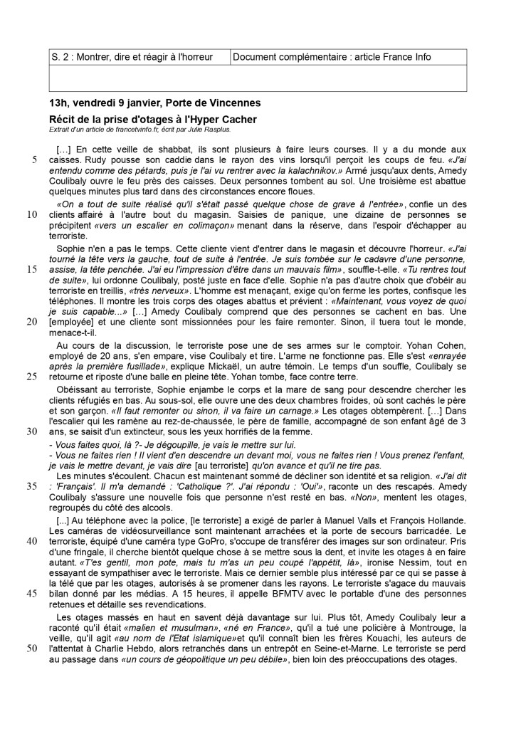 - inférences (lieux, temps, actualité…) – peut être travaillé avec l’aide du prof, par petits groupes, ou laissé à chacun